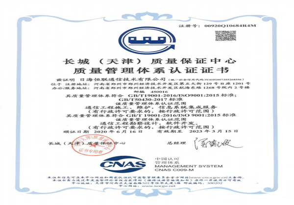 ISO9001質(zhì)量管理體系認證證書